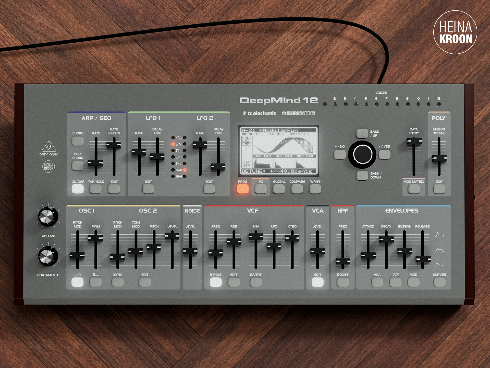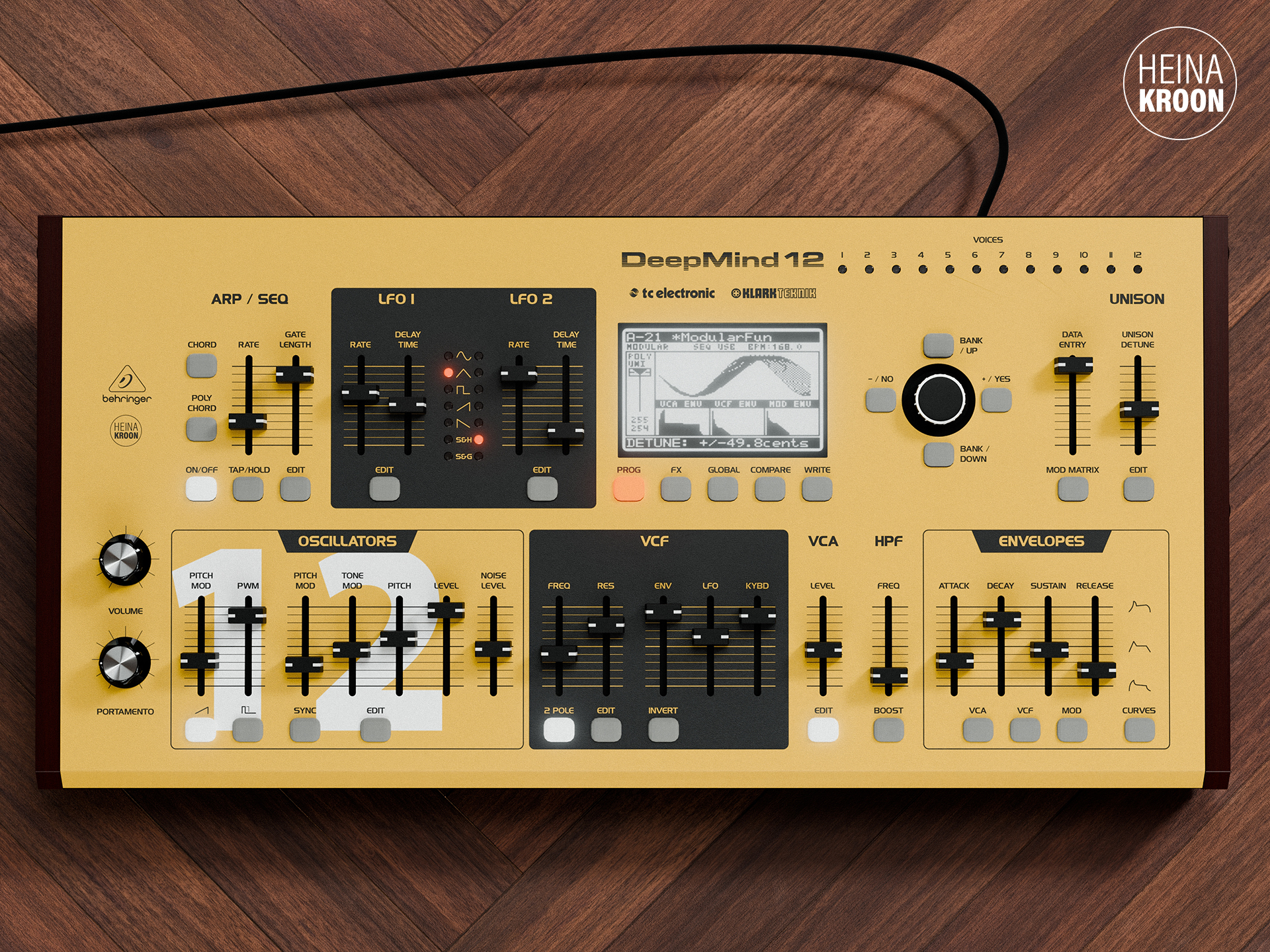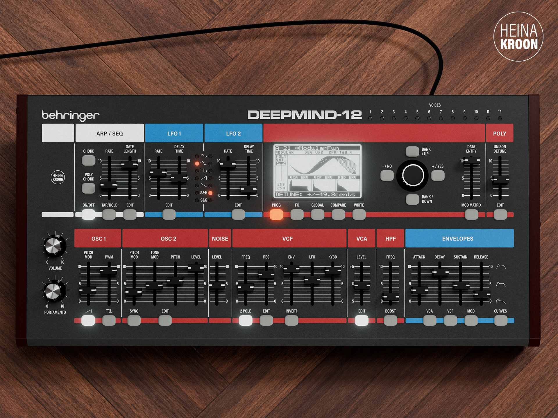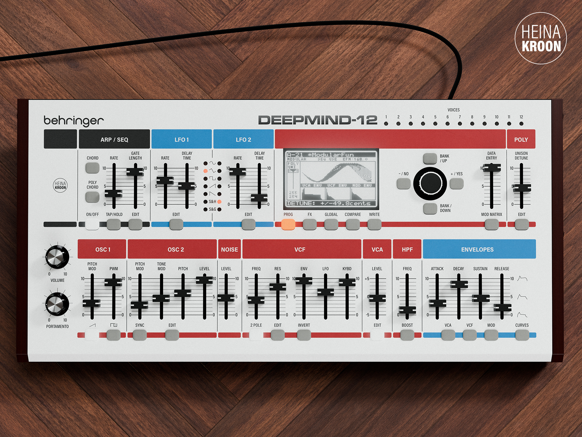 Self-adhesive frontpanel overlays for the Behringer DeepMind 12D.