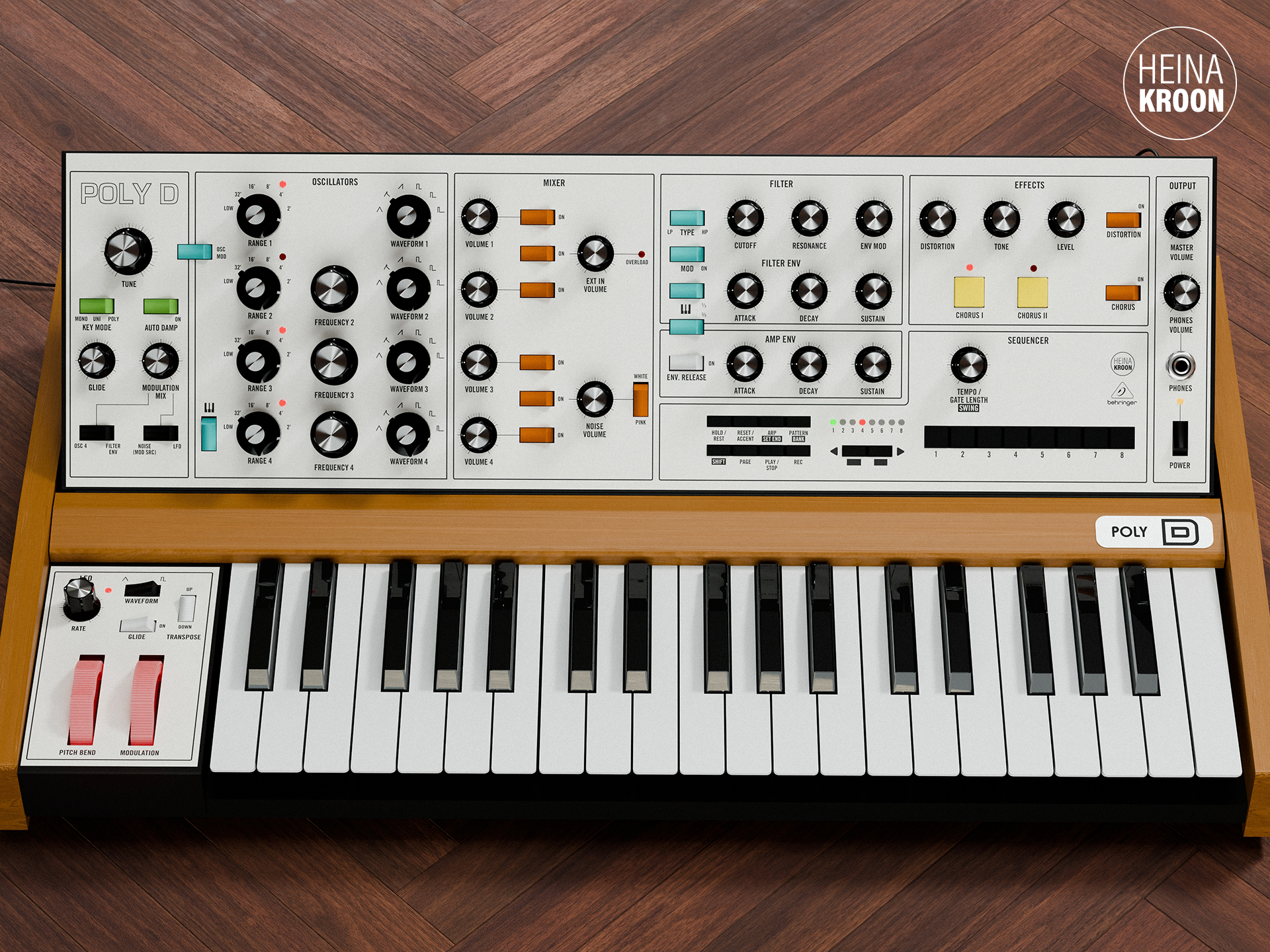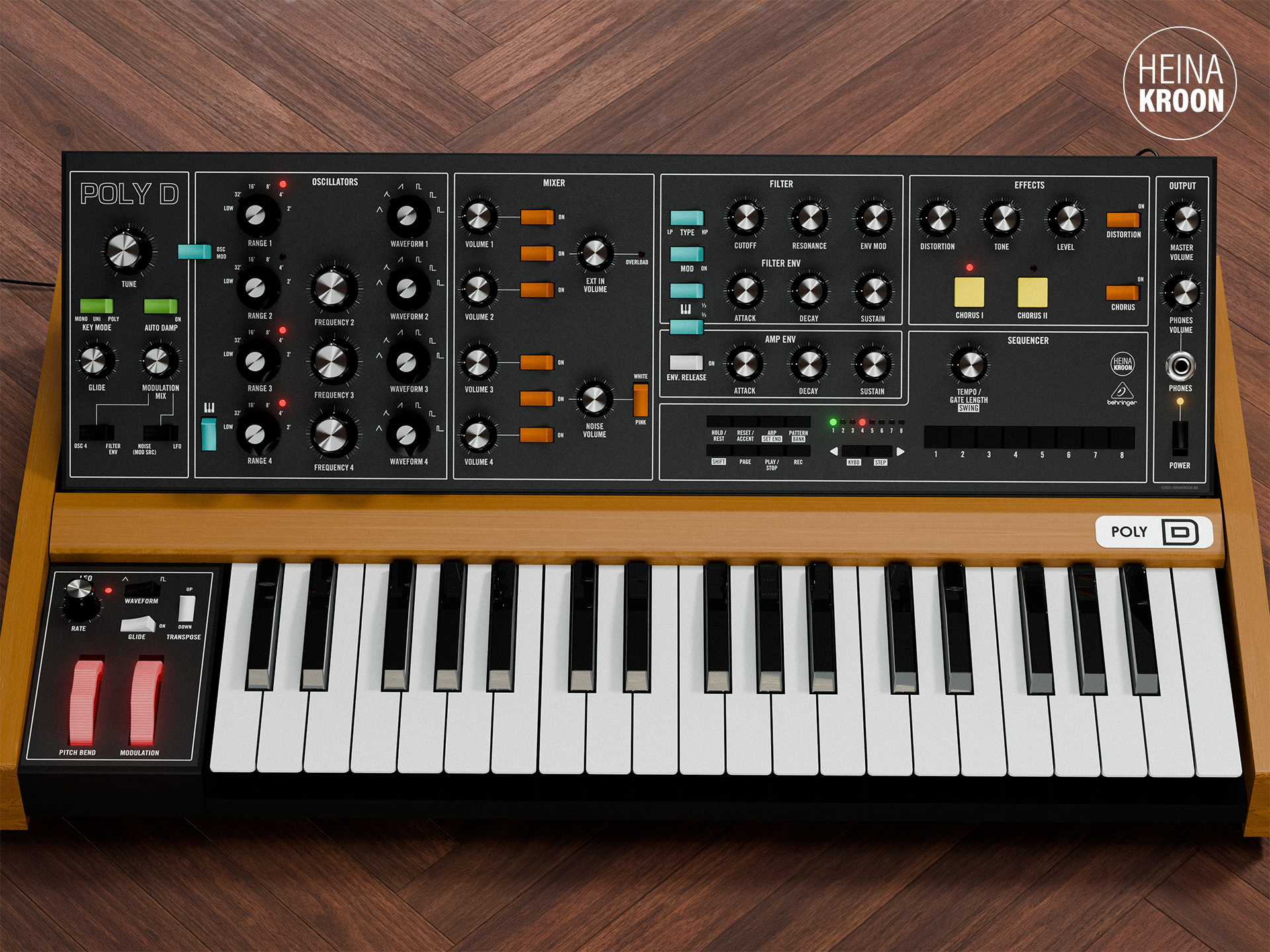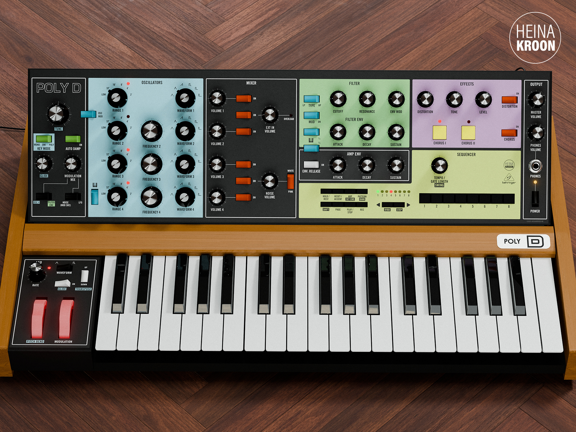 Self-adhesive frontpanel overlays for the Behringer Poly D.