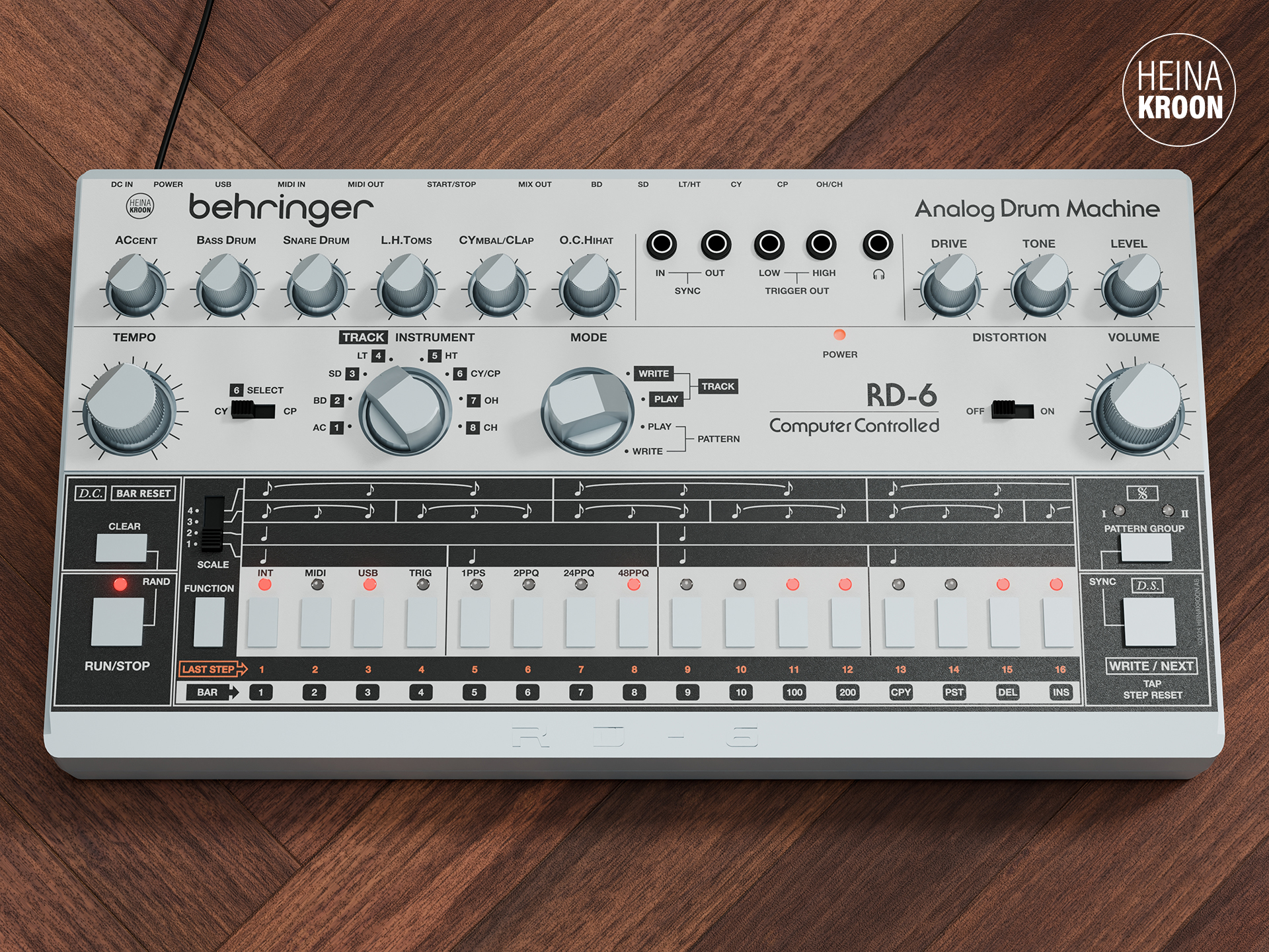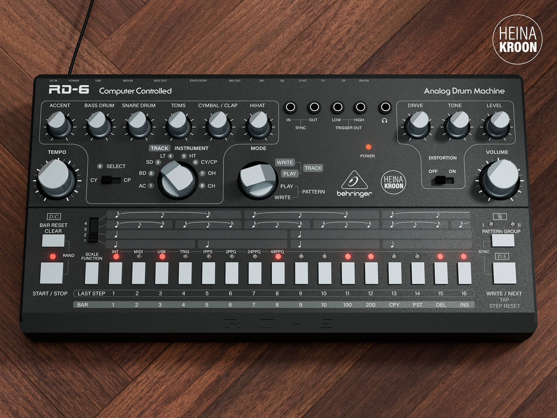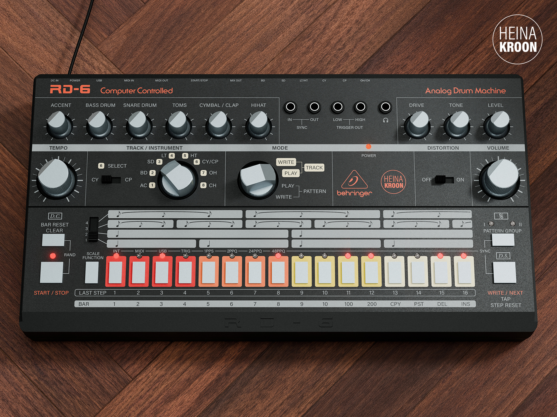 Self-adhesive frontpanel overlays for the Behringer RD-6.