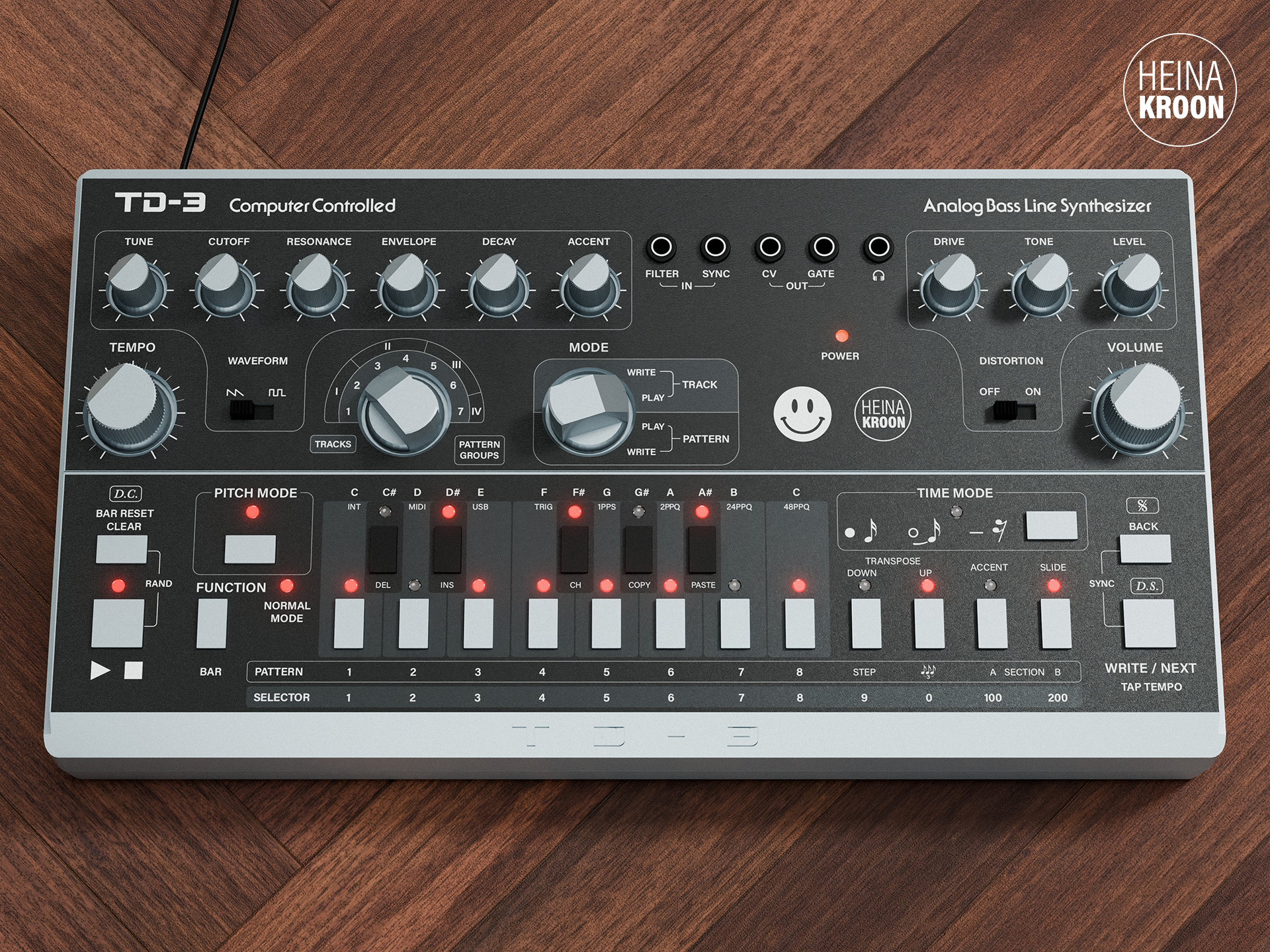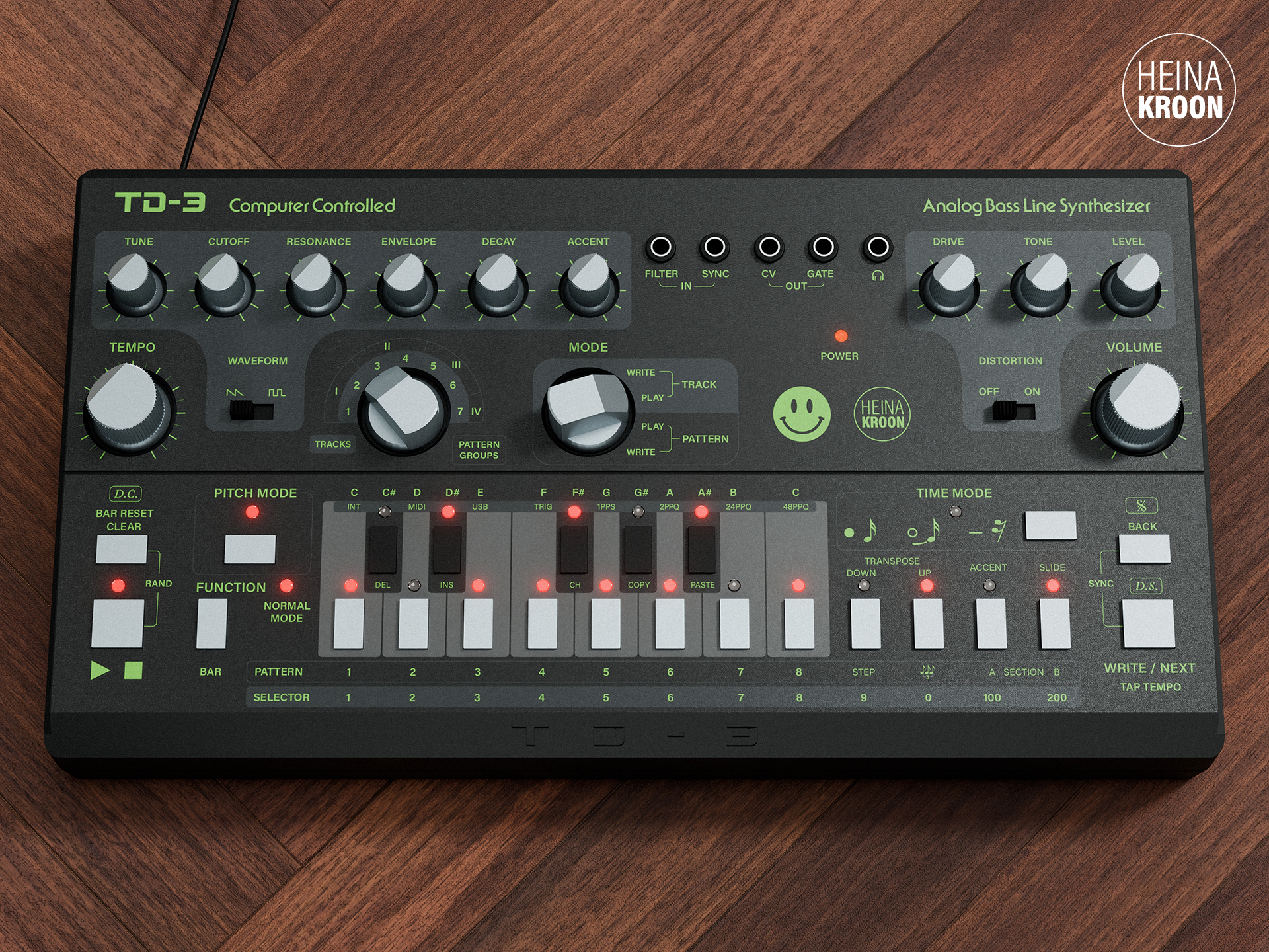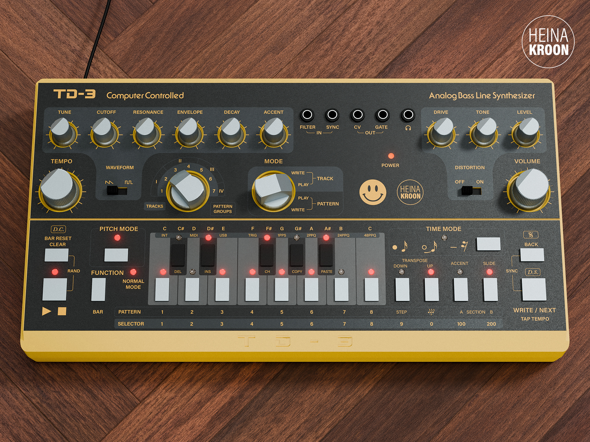 Self-adhesive frontpanel overlays for the Behringer TD-3.